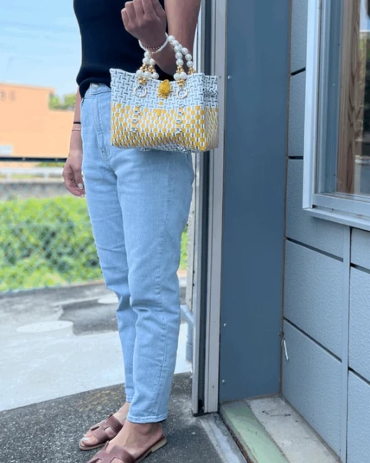 買い物バッグ(エコバッグ)として利用されているかごバッグ。