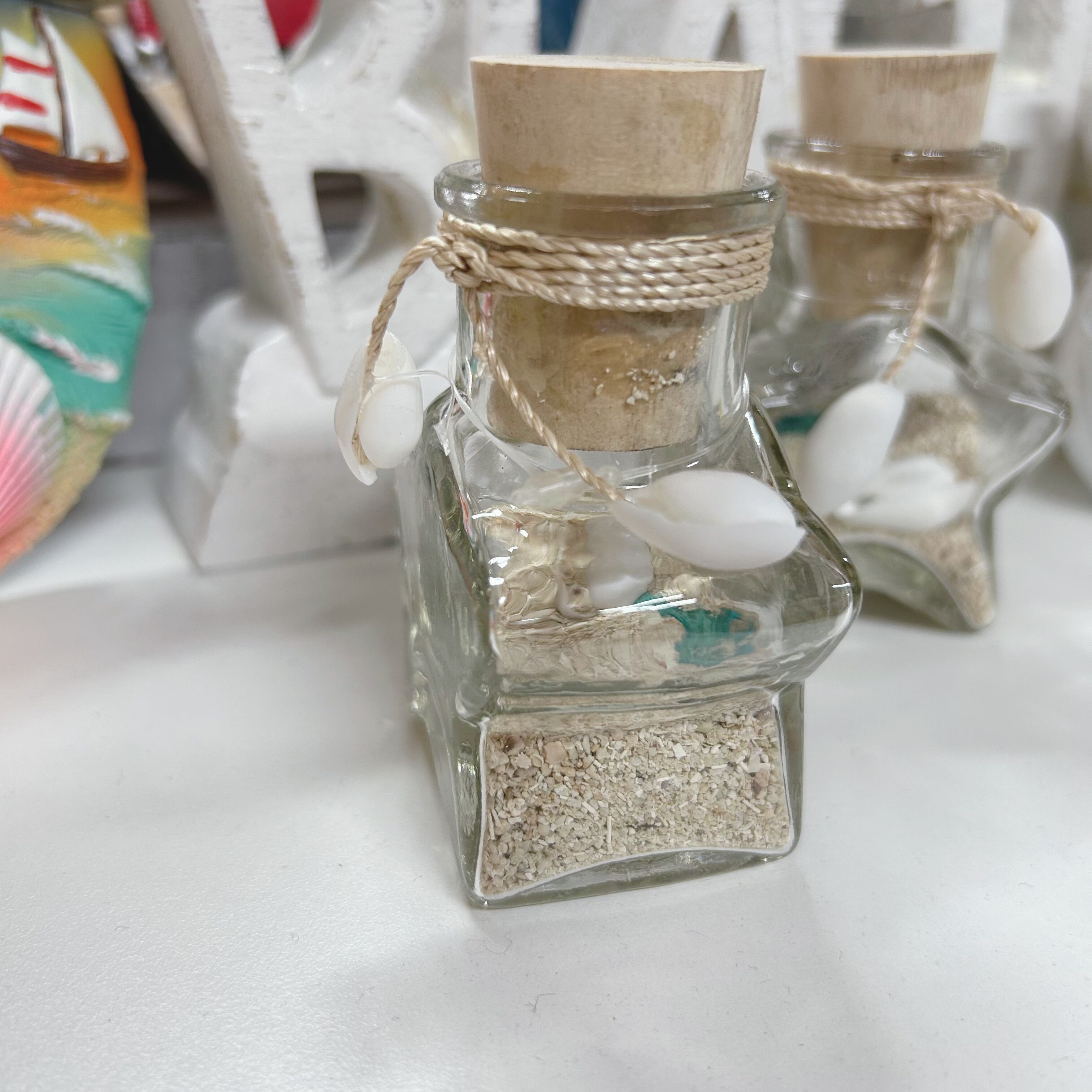 砂浜を瓶に閉じ込めたようなシェルボトルです。