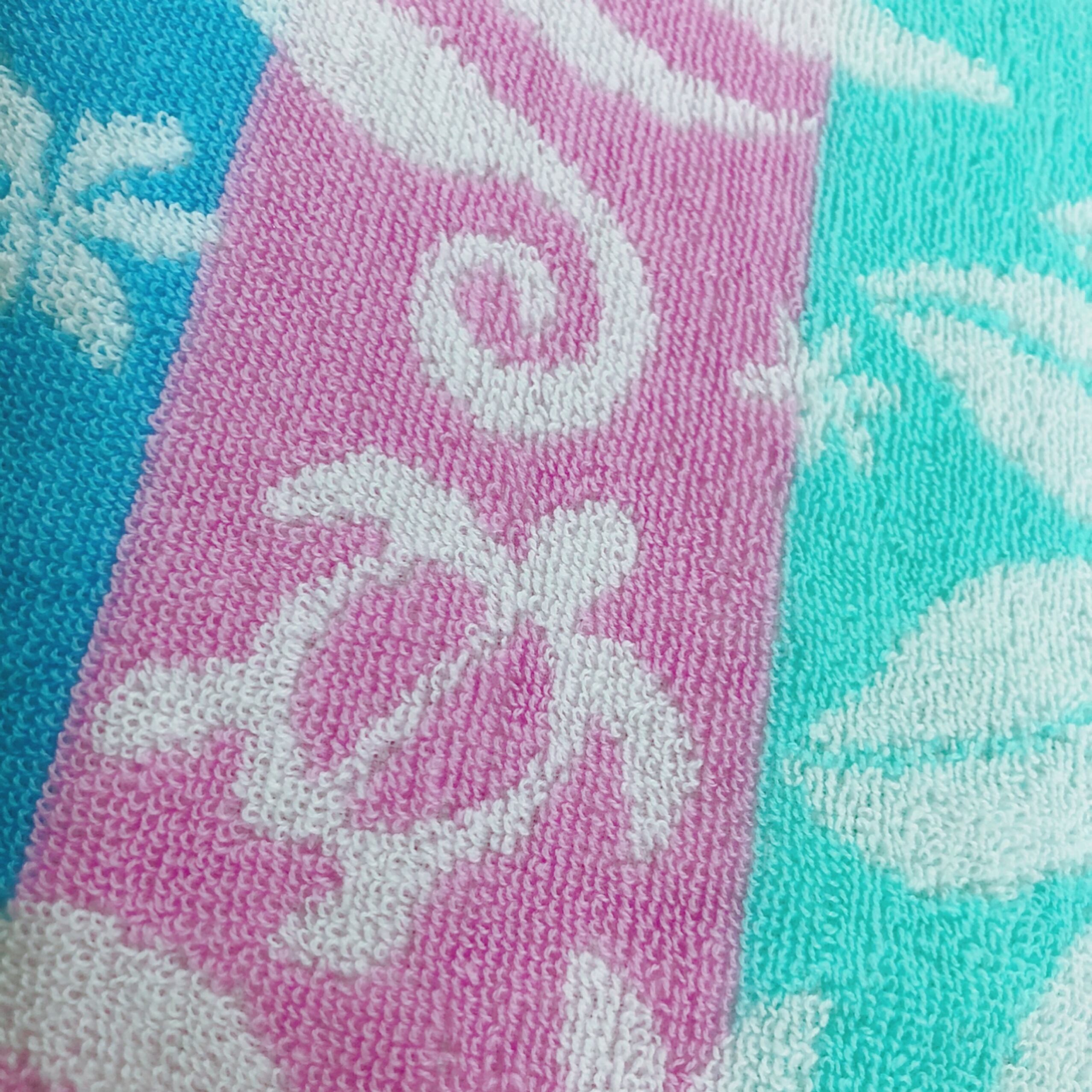 可愛いカラーの配色。綿100%のジャガード素材で
